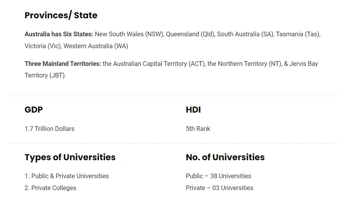 Australia is a multicultural, vibrant, and dynamic country known for its pleasant climate, stable democracy, and English-speaking, friendly population. The nation offers a safe and welcoming environment where students can both learn and travel freely. Living expenses and tuition costs in Australia are generally more affordable compared to the UK and the USA, making it an excellent value-for-money destination while maintaining one of the highest standards of living globally.